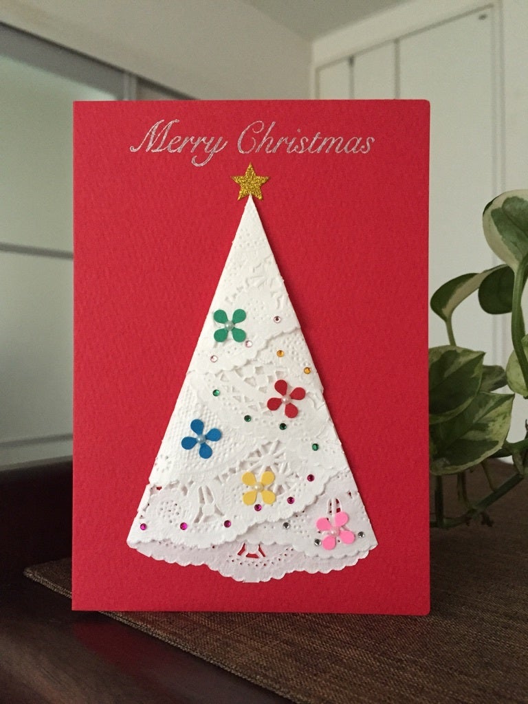簡単手作りカード! レースペーパーで クリスマスツリーの 作り方』。