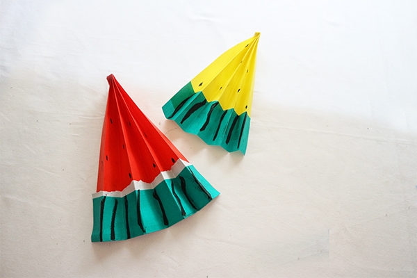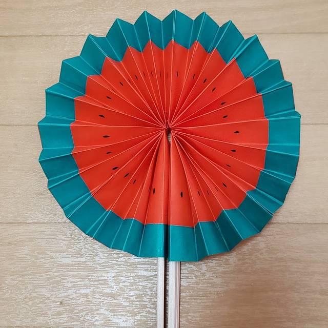 スイカ工作を折り紙で!簡単、かわいい蛇腹うちわの作り方ちょちょいの工作部屋。