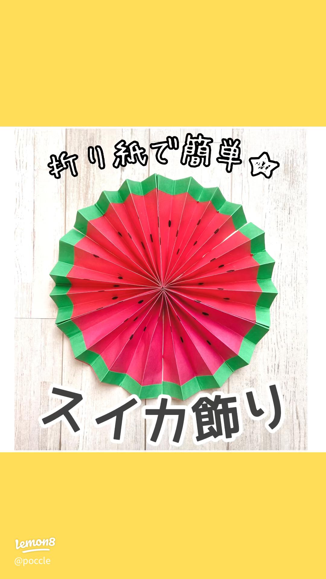 折り紙 画用紙 「スイカ提灯」簡単製作 工作 壁面飾り 保育製作 介護レクリエーション 七夕飾り 納涼祭 – 壁面製作 花かめカンパニー折り紙 モンスタ。