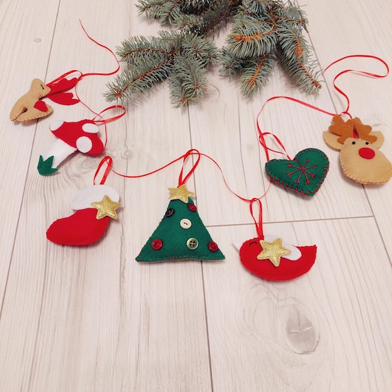 Christmas クリスマスオーナメント ガーランド Redカラー10点セットiichi日々の暮らしを心地よくするハンドメイドやアンティークのマーケットプレイス。
