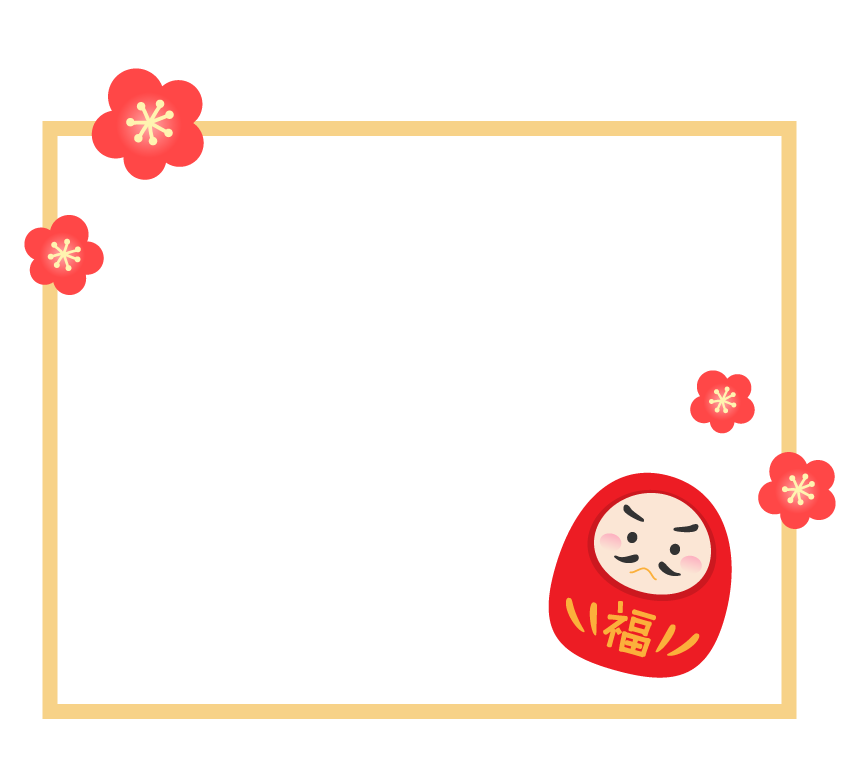 かわいい達磨 だるま と梅の花のフレーム・枠イラストフリー素材 イラストミント。