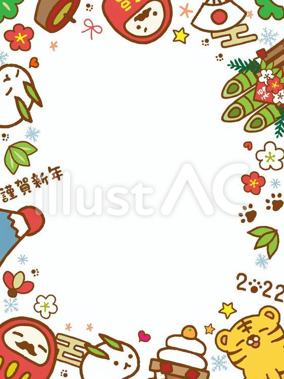 縦向きのかわいい手描きのお正月フレームイラスト - No: 22168865無料イラスト・フリー素材なら「イラストAC」。
