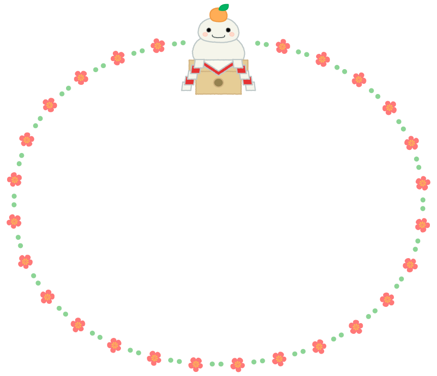 かわいい鏡餅と梅の花の楕円フレーム飾り枠イラスト無料のフリー素材 イラストエイト。
