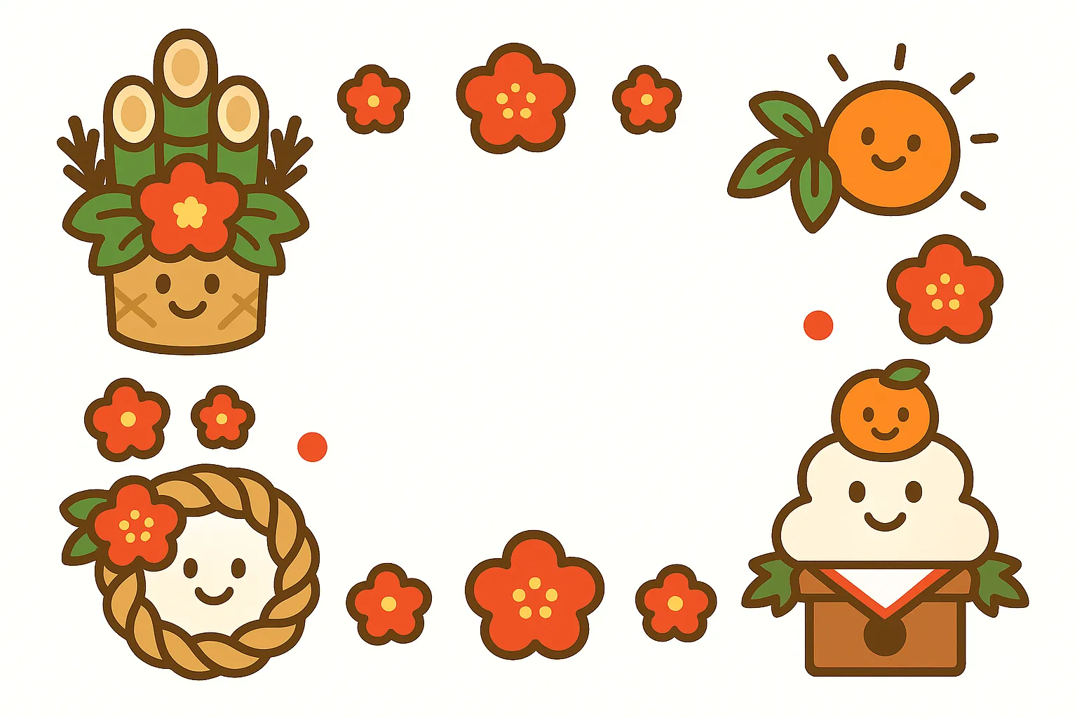 和柄のラインかわいいお正月フレーム・イベント正月行事用におすすめフレーム 飾り枠 Decome。