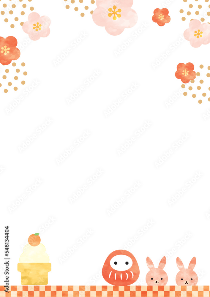 かわいいお正月のアイコン 背景フレーム 縦 イラスト素材6593885- フォトライブラリ。