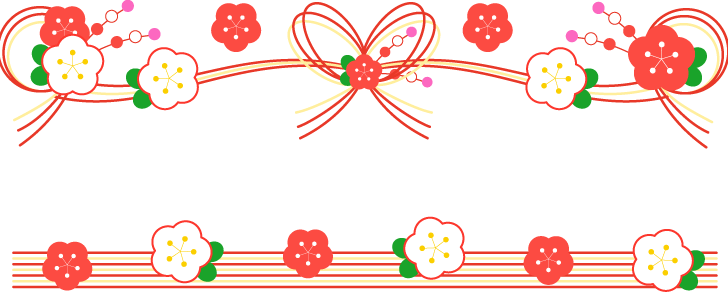 リボンと梅のかわいいフレーム<お正月・節分・枠・花・デコレーション・シンプル>お祝いごとに使えるフレーム素材無料イラスト素材TemplateBox。