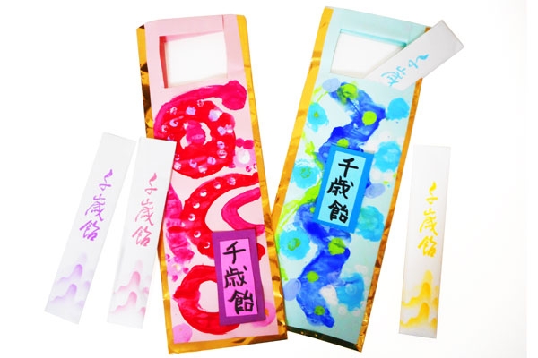 保育園・幼稚園 七五三の千歳飴袋の製作アイデア。