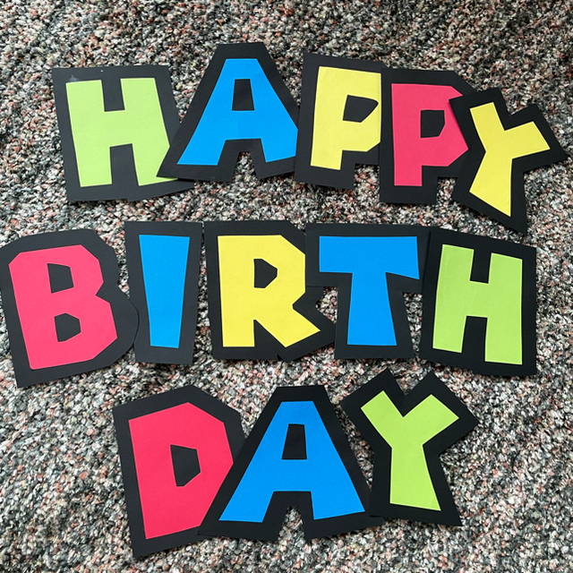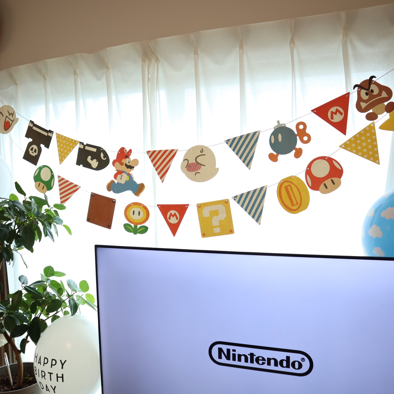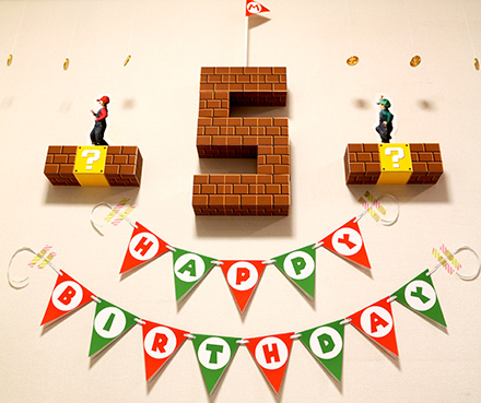 壁面マリオお誕生日ガーランド。