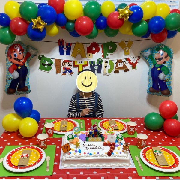 次男6歳誕生日🎂マリオの飾り付けのパーティーにしました🎉 : えはみのDIYと暮らしブログ。