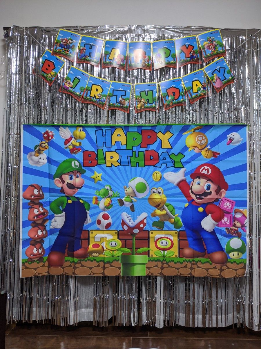 マリオ 誕生日 タペストリー ガーランド。