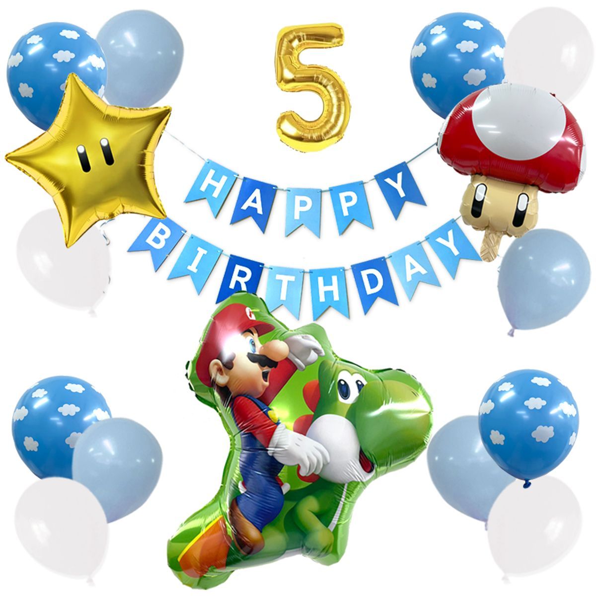 5歳用 新品 マリオとヨッシーが仲良く元気にお誕生日をお祝いセット雲 スター キノコ 17pc バースデー ガーランド 風船ギフトお祝い 飾り こどもパーティ - メルカリ。