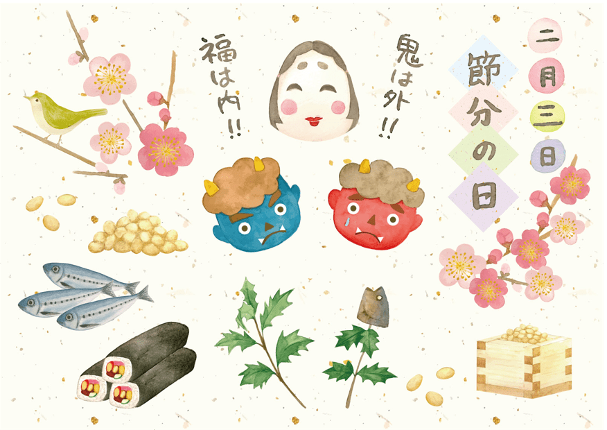 節分のイラスト 豆まき・福豆4カット- イラストくん。