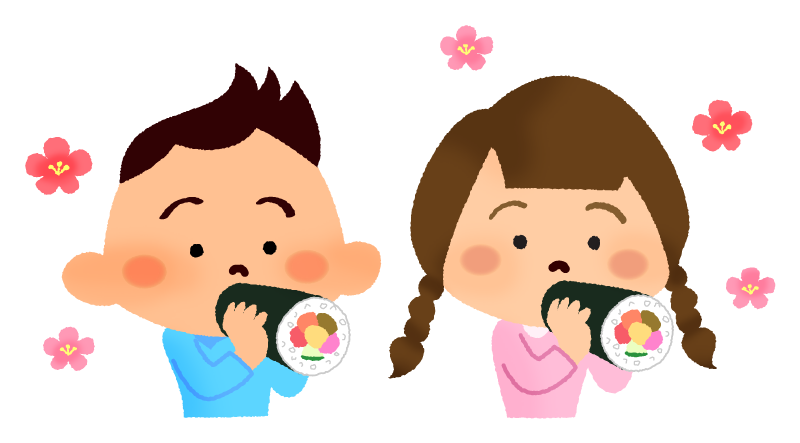 恵方巻を食べる子供たちの無料イラストフリーイラスト素材集 ジャパクリップ。