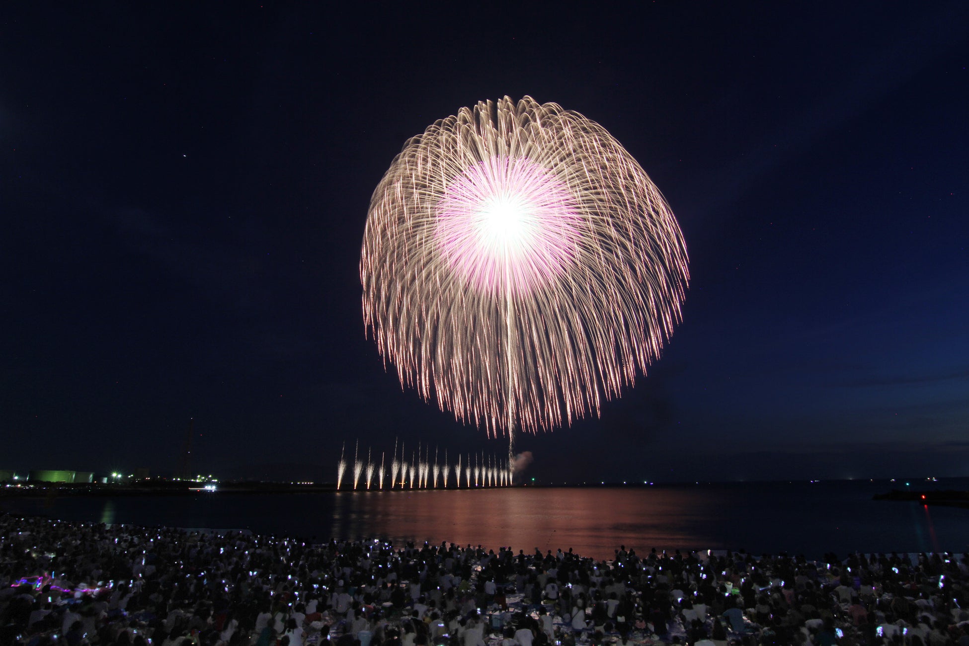 日本海に美しい半円を描く水中花火は必見 第42回三国花火大会 有料観覧席販売中!坂井市役所のプレスリリース。