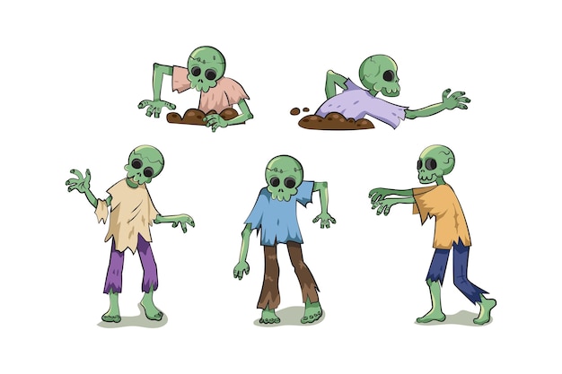 さまざまなポーズのハロウィーン ゾンビ ベクトル イラストPremiumベクトル素材。