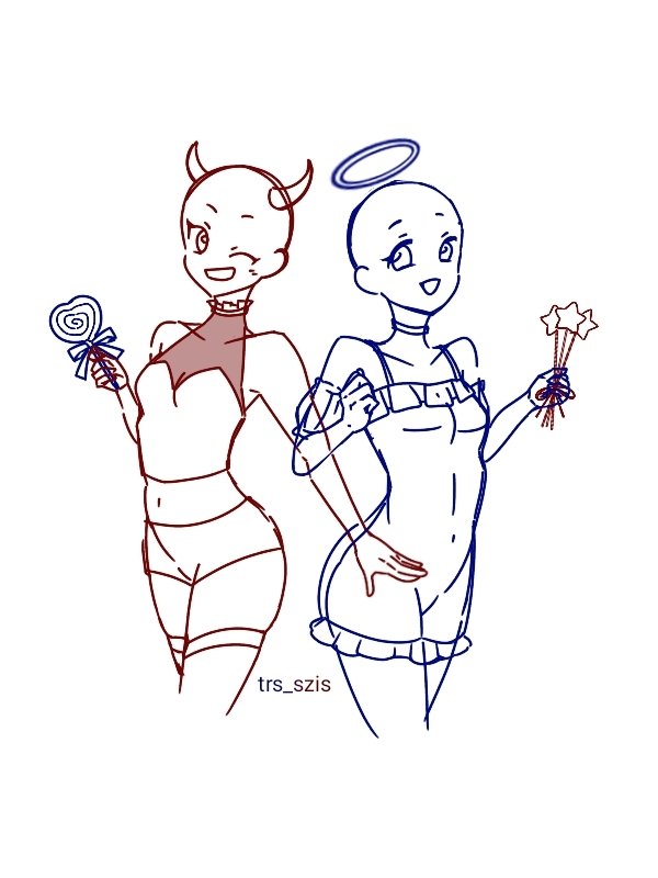 イラスト用トレス素材 on X: "悪魔と天使 ハロウィンぽい素材その1 お洋服や持ちものなど、色々変えて大丈夫です。表情ポーズ等も改変OK。トレス 素材 https:t.co 36tFbQQJfd"X。