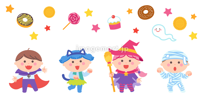 ハロウィンのおばけの衣装を着てポーズする子どもたちのイラスト素材143589126- イメージマート。