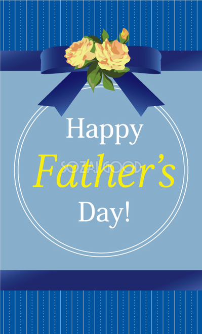 父の日メッセージカードデザイン_黄色いバラと紺色リボン飾りイラスト無料テンプレート80976素材Good。