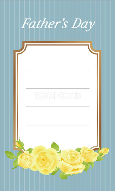父の日はがきテンプレート・黄色いバラ・飾り枠」ダウンロードかわいい無料イラスト 印刷素材.net。