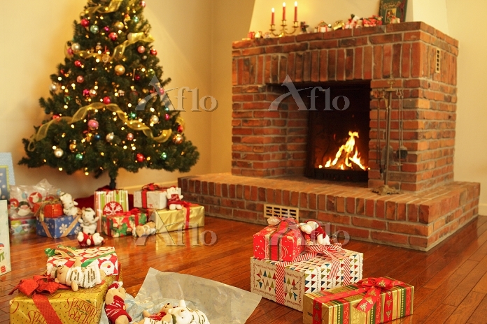 暖炉とクリスマスプレゼント 25126027105 の写真・イラスト素材アマナイメージズ。