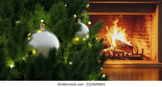 自宅の暖炉の近くに飾られたクリスマスツリー 写真 無料ダウンロードのための画像 - Pngtree。