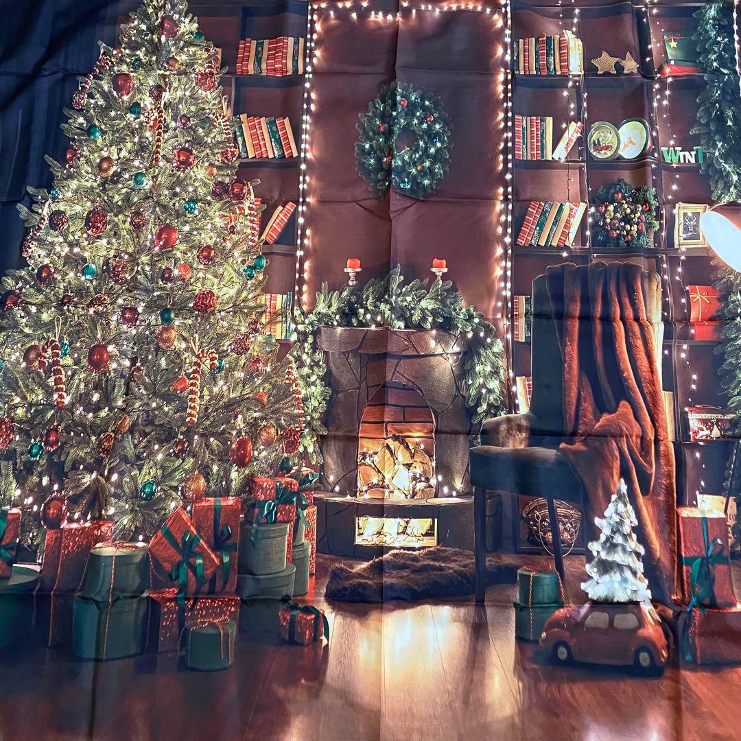 クリスマス タペストリー 背景布 プレゼント ツリー 暖炉 クラシック X51a。