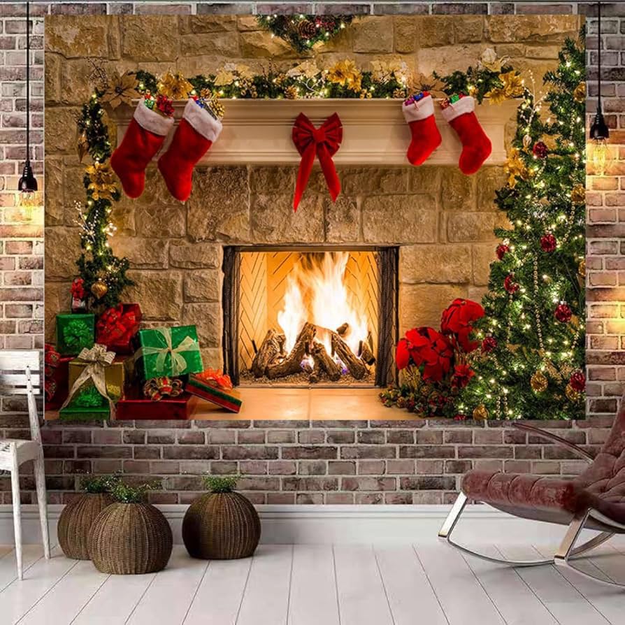 Amazon.co.jp: 暖炉が部屋にやってきた タペストリー クリスマス 暖炉 イベント パーティー ツリー 装飾 ロゴ 150x200cmグッズ モチーフ おしゃれ ポスター 大きい 絵 壁 DGM14 インテリア 布 目隠し 背景布 ファブリックポスター 飾りつけ キャンドル 家ホーム。