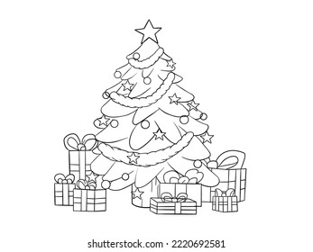 クリスマスツリー プレゼント有り 白黒イラスト - No: 25799528無料イラスト・フリー素材なら「イラストAC」。