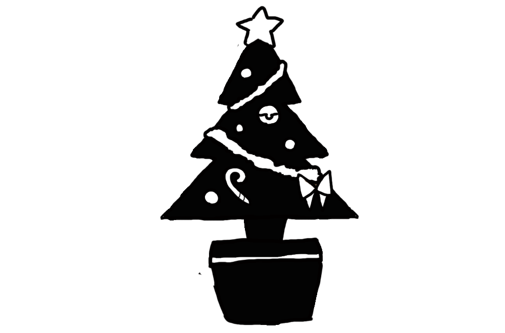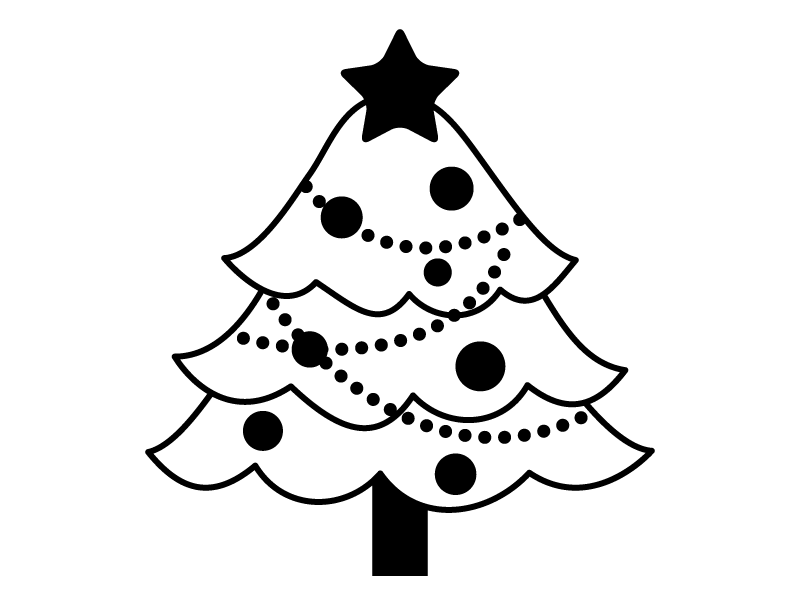 クリスマスツリーの白黒イラストかわいい無料の白黒イラスト モノぽっと。