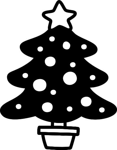 クリスマスツリーの白黒フリー素材かくぬる素材工房。
