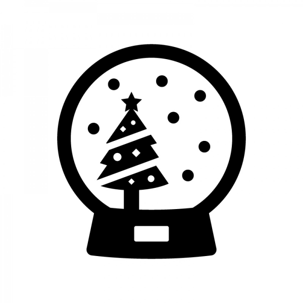 クリスマスツリーのスノードームのシルエット無料のAi・PNG白黒シルエットイラスト。