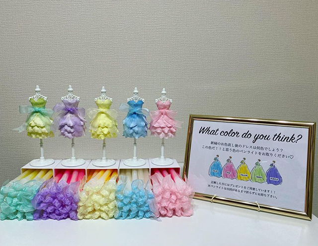 結婚式 ドレス当てクイズ ペンライト付き ウェルカムスペース 結婚式 ドレス色当てクイズ。