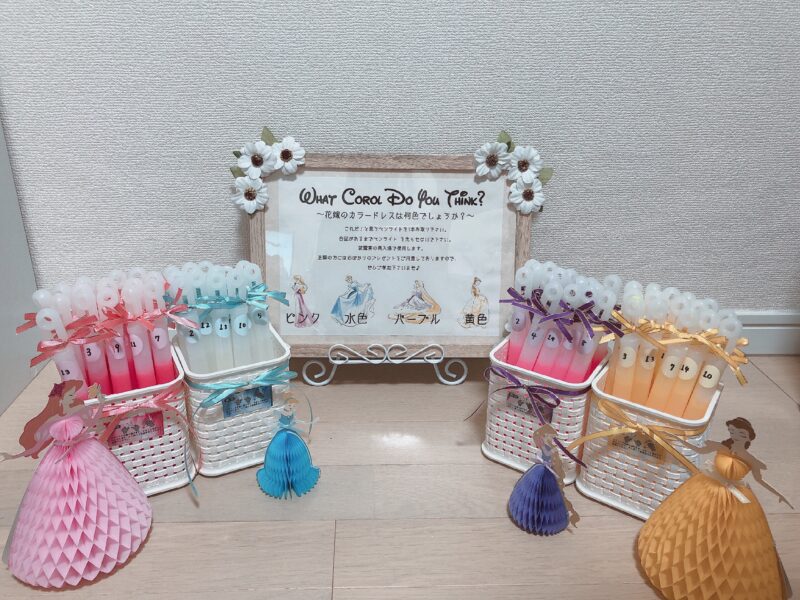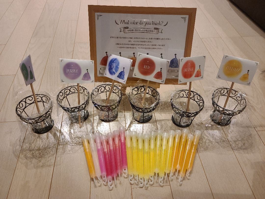 カラードレス色当てクイズ サイリウム ケミカルライト ディズニー 結婚式。