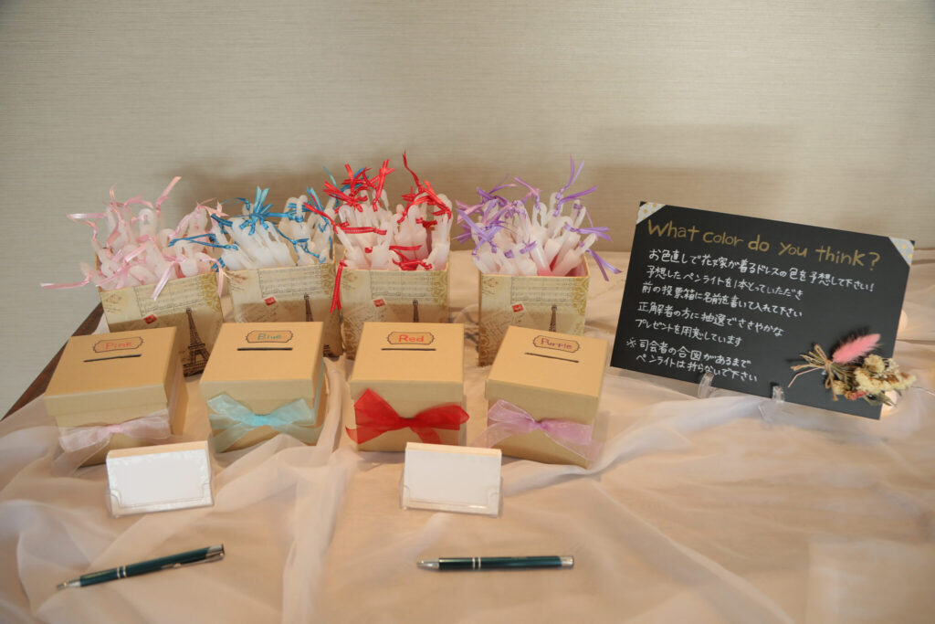 ドレス色当てクイズ用ペンライト 外注 株式会社ルミカ❁Renoahの卒花嫁ブログ❁アニヴェルセル豊洲 マリッジミライ。