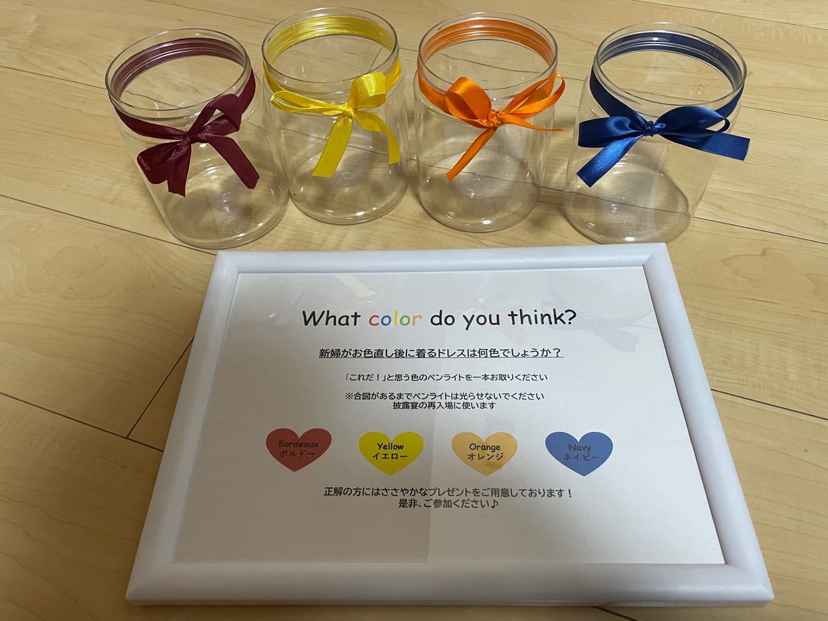 DIY お色直し色当てクイズ準備ずぼら卒花のDIYウェディング@表参道の某式場。