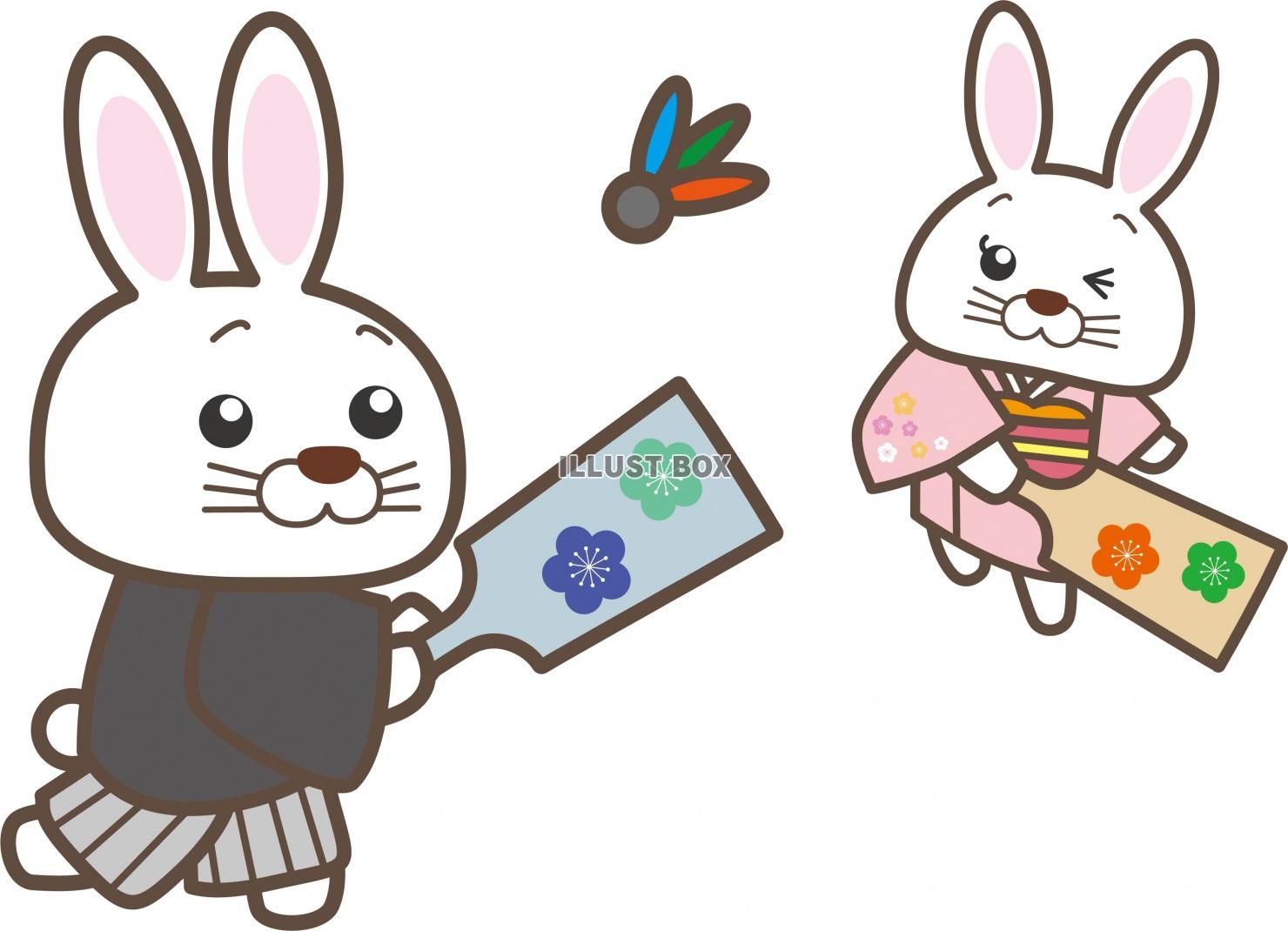 2023年干支卯年 うさぎ年 の年賀状・正月素材・羽根つきをしているかわいいウサギさんのイラスト素材無料の年賀状素材TemplateBox。