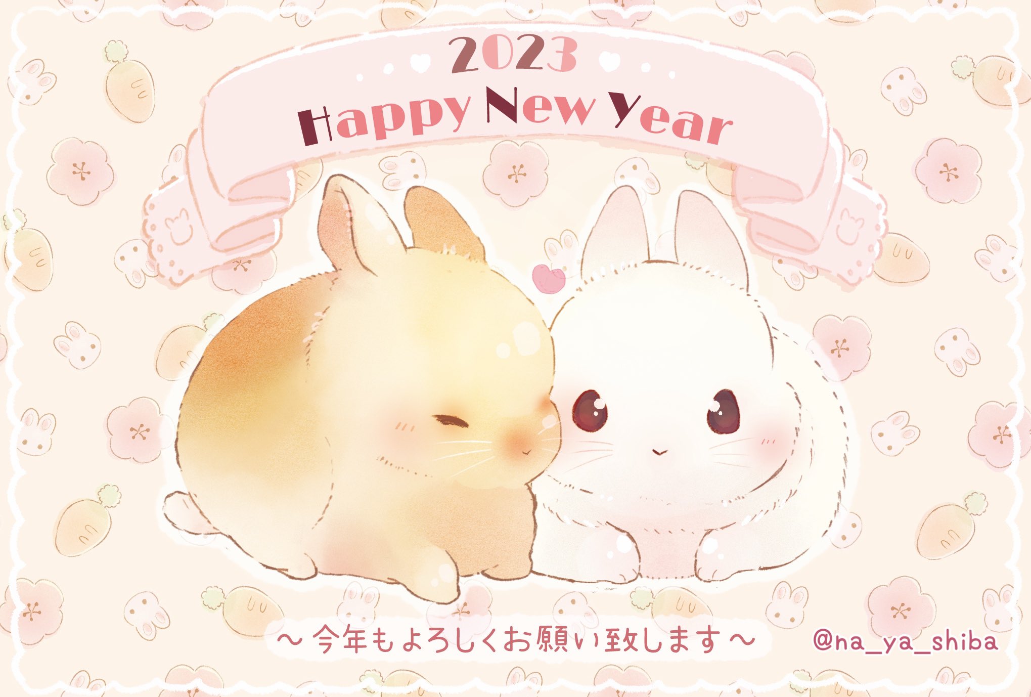 なやしば🐕イラストレーター on X: "あけましておめでとうございます🐰 2023年もよろしくお願いいたします🐕🙇🏻♀️✨️新年のはじまりに、もふもふうさちゃんお届けします🐰お正月イラスト年賀状イラスト年賀状2023うさぎ年卯年うさぎうさぎイラスト。