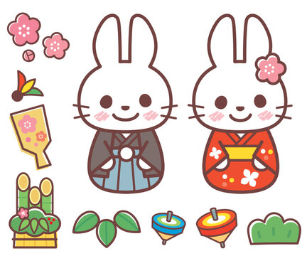 かわいいうさぎとお正月のイラストセット204304371- イメージマート。
