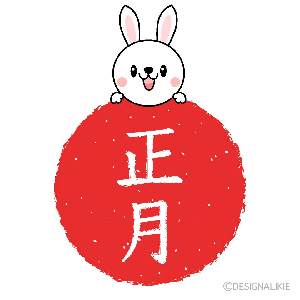 お正月のウサギキャライラストのフリー素材イラストイメージ。