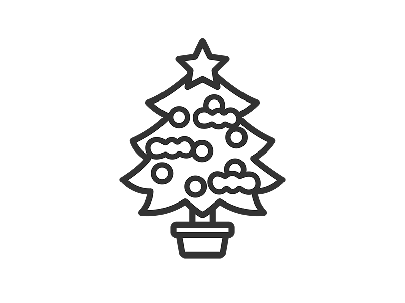 塗り絵に最適な白黒でかわいいクリスマスツリーの無料イラスト・商用フリーオイデ43。