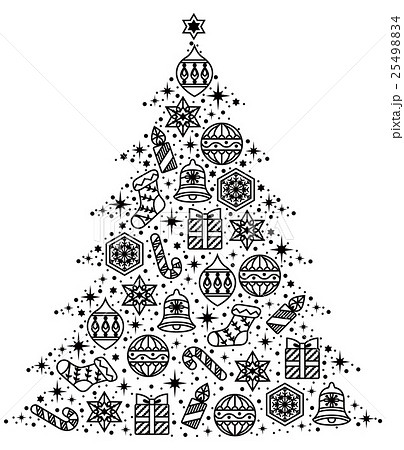 クリスマスツリー クリスマス 白黒 オーナメントのイラスト素材 - PIXTA。