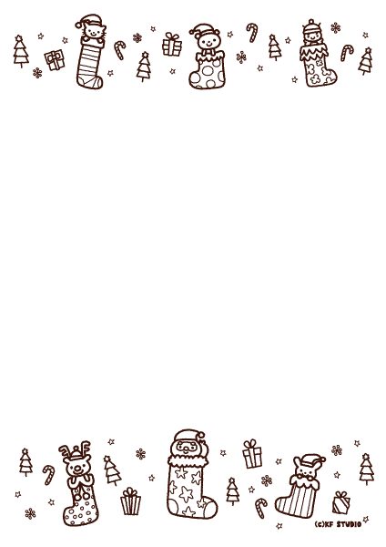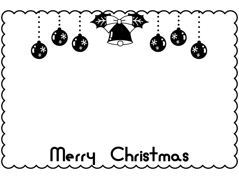 クリスマスカード-白黒テンプレート <無料>かわいいフリー素材 イラストK。