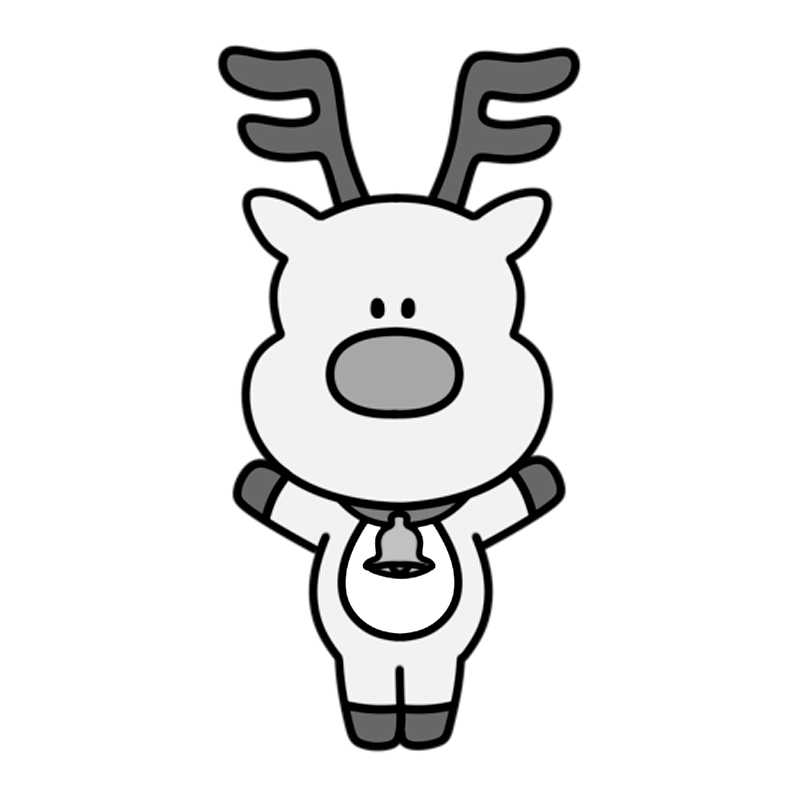 トナカイの白黒フリー素材 クリスマスイラストかくぬる素材工房。