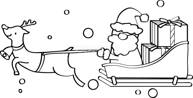 ソリに乗ったサンタクロースの白黒無料フリーイラスト - イラストストック。