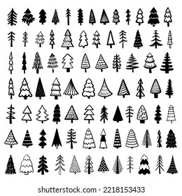クリスマスツリー各種セット。コレクション白黒のシルエット。インクスケッチ。落書き風のモノクロ手描きのベクターイラスト。」のベクター画像素材 ロイヤリティフリー2218153433Shutterstock。