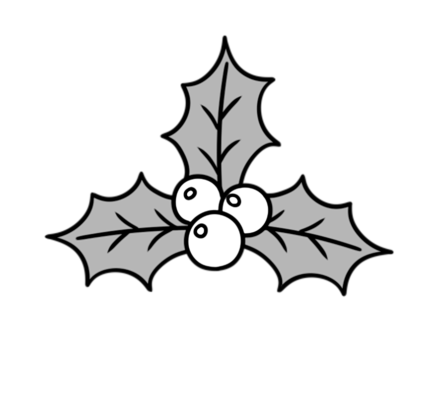 クリスマス 柊の白黒イラスト モノクロフリー素材かくぬる素材工房。
