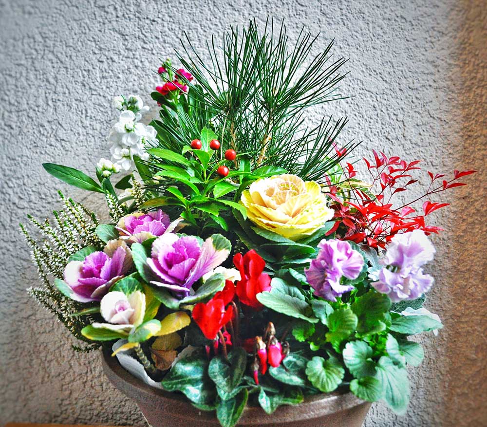 正月◎寄せ植え・鉢植えフラワーマーケット花由公式サイト。