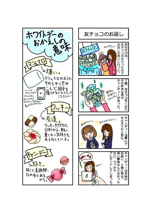 ホワイトデーのお返しの意味漫画田中 清加 お花と刺繡。