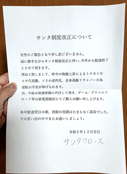 息子に届いた「サンタ制度改正」のお知らせ 現実的すぎる終了理由に爆笑Infoseekニュース。