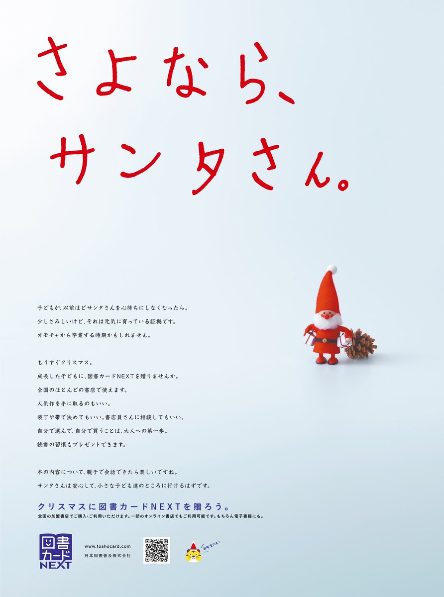 図書カードNEXT on X: " さよなら、サンタさん。「もうサンタさんが来なくても大丈夫!」そんな風に子どもたちが自立し始めたら、サンタさんの代わりに周りの大人たちが、そっと支えてあげたいですね。今日の朝日新聞に掲載した、図書カードNEXTからのメッセージです。